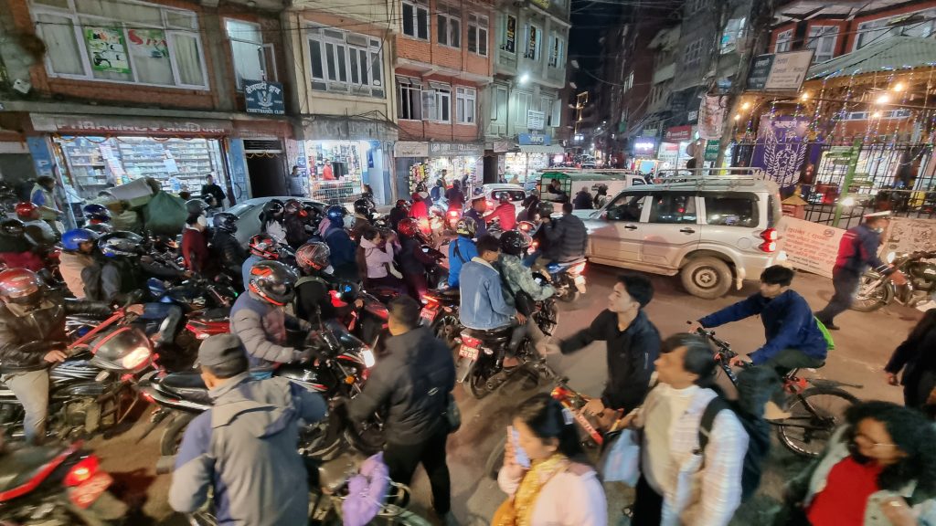 Vi sidder i haven og får kaffe, vi laver blogs og et par timer går let. Vi går op til Thamel (byens turistcentrum), vi ved, hvor vi vil spise. Men hold da maule, hvor er der sindssyg trafik. Tihar og ferie er slut, det er igen hverdag og åbenbart rushhour, det er næsten skræmmende. Trafikken er lige så tæt som da vi kom for to måneder siden.